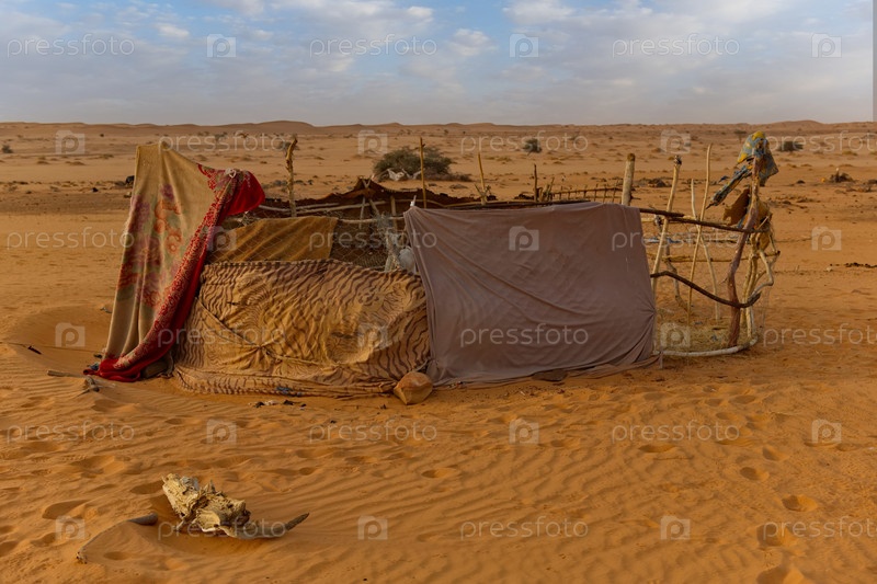Западная Африка, Мавритания. Легкие примитивные постройки кочующих по пустыне Сахара местных жителей