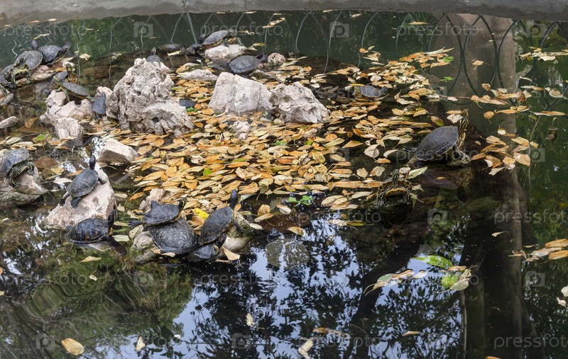 Речные черепахи (Trachemys scripta scripta) в крупном плане