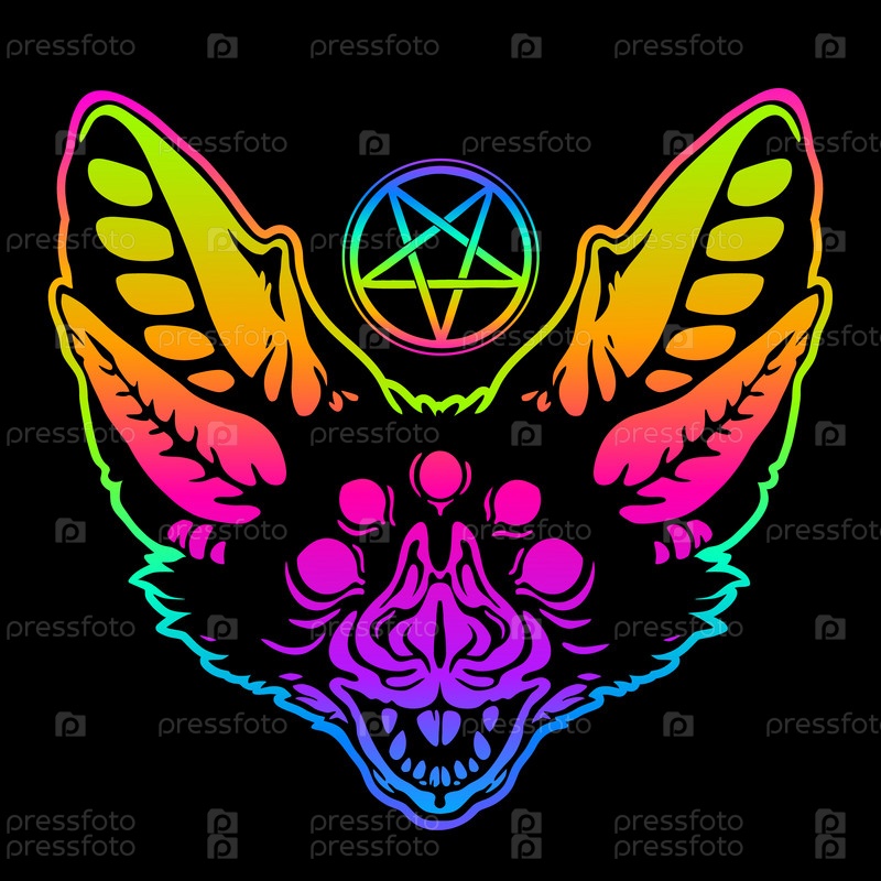 Жуткая пятиглазая голова летучей мыши в неоновых ярких цветах