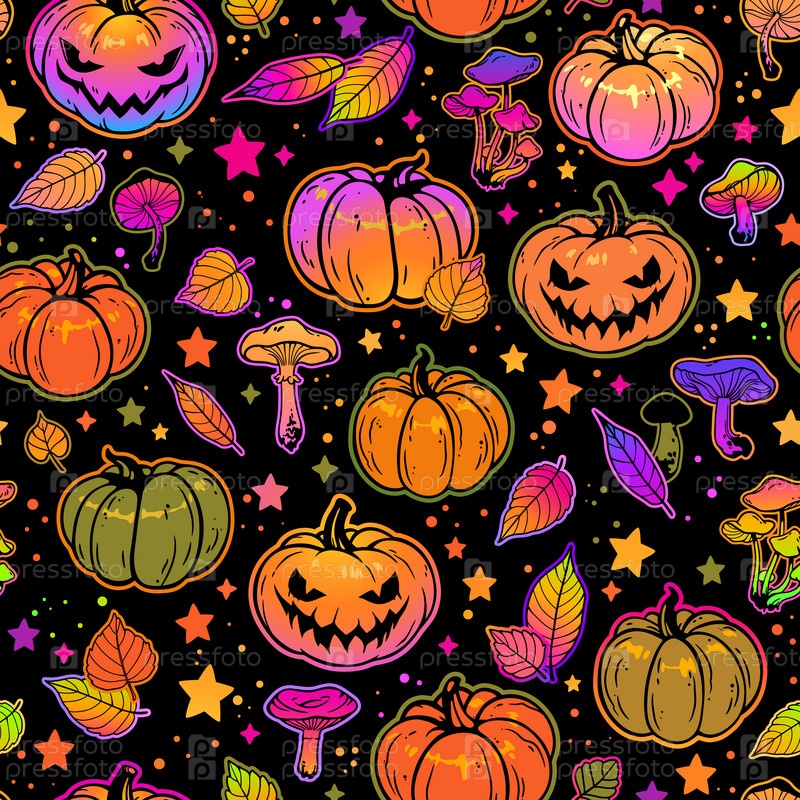 Бесшовный узор из ярких разноцветных тыкв на Хэллоуин