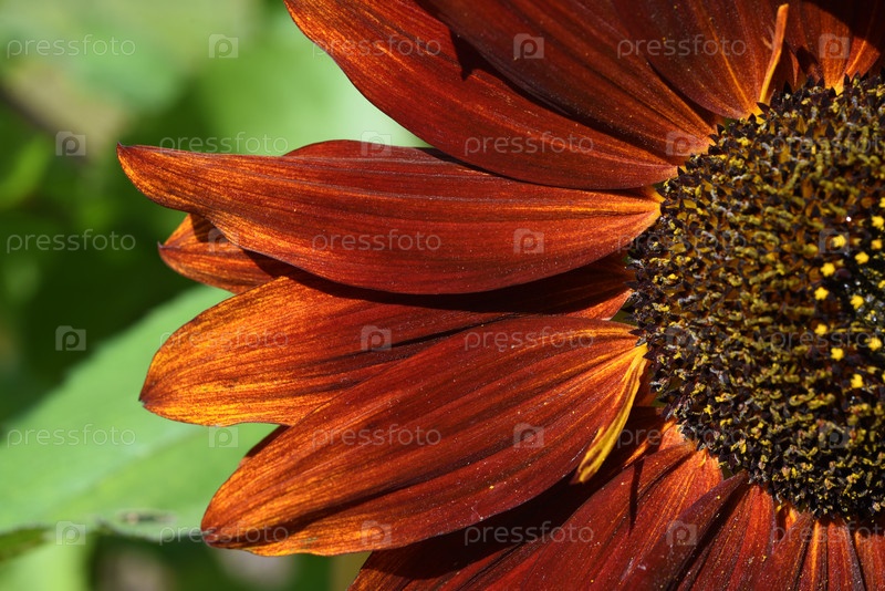 Красный подсолнух в летнем саду. Крупный красный декоративный цветок