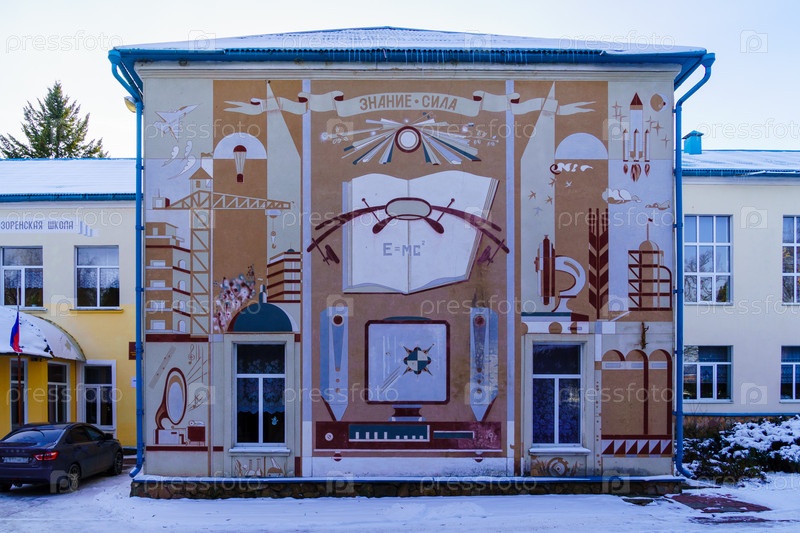 Сельский пейзаж. Краснозоренская средняя школа. Поселок Красная Заря. Орловская область