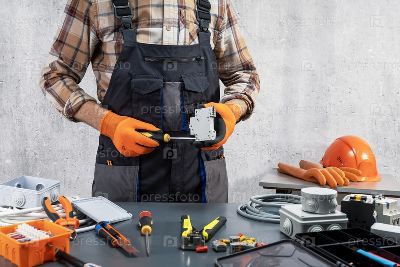 Электрик, работающий с электрической системой. ремонт электрооборудования