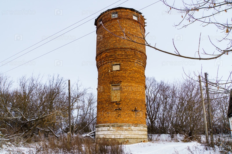 Сельский пейзаж. Кирпичная водонапорная башня. Поселок Красная Заря. Орловская область