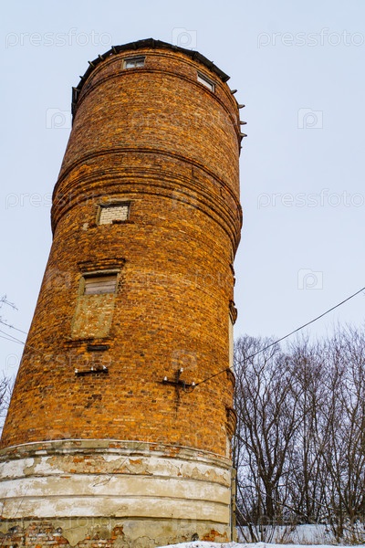 Сельский пейзаж. Кирпичная водонапорная башня. Поселок Красная Заря. Орловская область