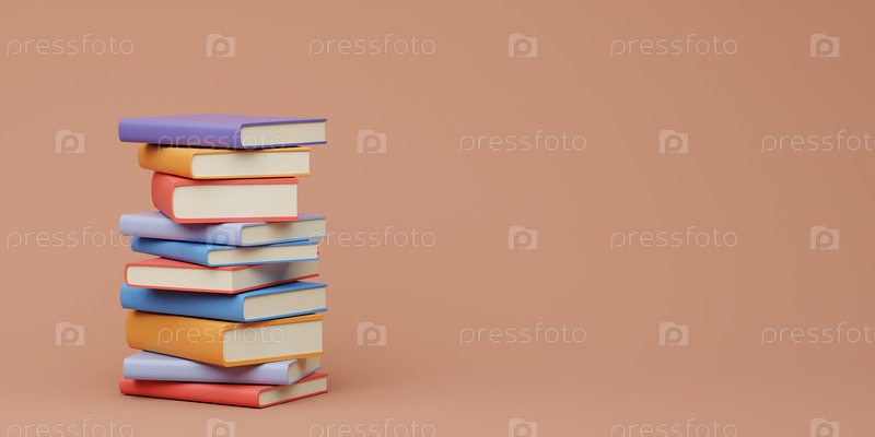 Стол мультицветных книг, 3D-рендеринг