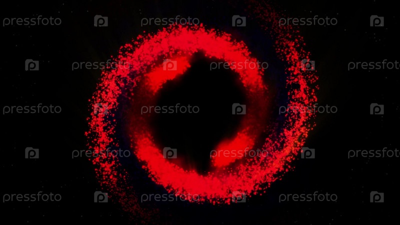 Галактика красная, вращающаяся по часовой стрелке, яркие круглые частицы