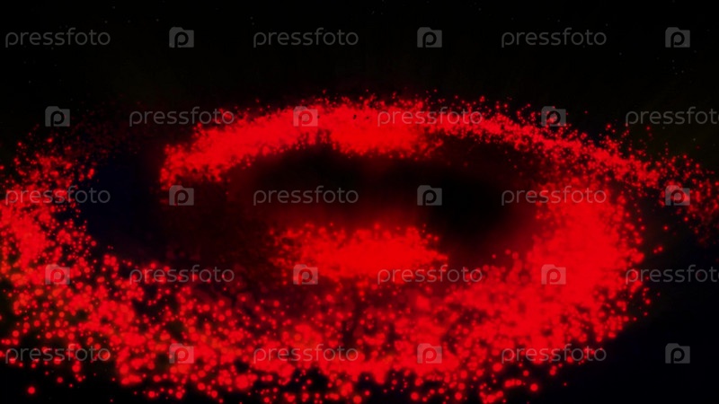 Галактика красная, вращающаяся по часовой стрелке, яркие круглые частицы