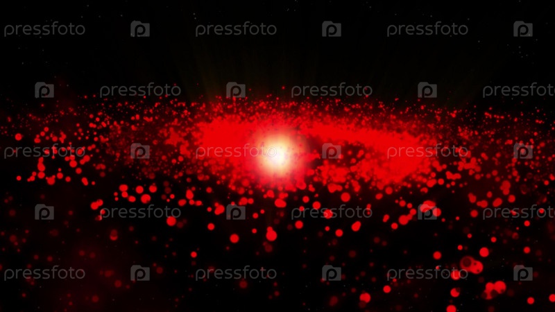 Галактика красная, вращающаяся по часовой стрелке, яркие круглые частицы