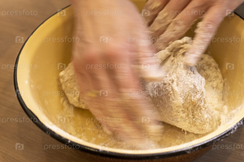 Женщина замешивает тесто в миске. Выпечка