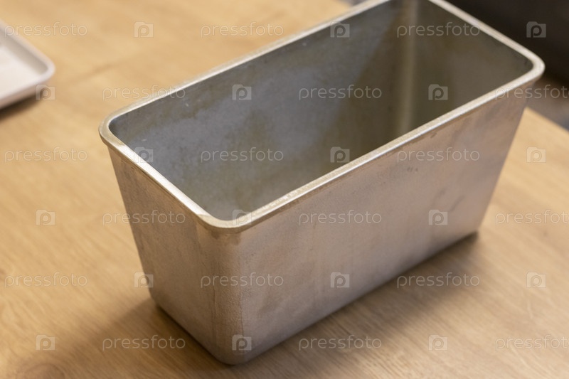 Крупным планом вид на форму для выпечки хлеба на кухонной столешнице. Выпечка