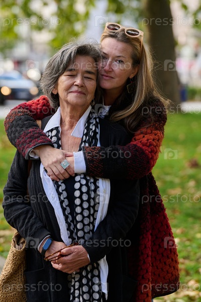 Сердечные объятия: дочь поддерживает свою мать в прекрасный осенний день