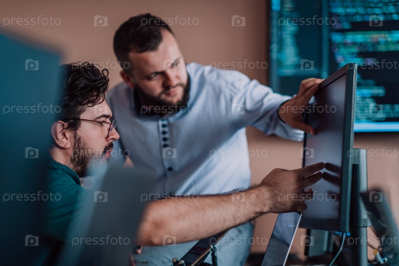 Программисты, погруженные в тесное сотрудничество, усердно трудятся вместе над решением сложных проблем и разработкой инновационных мобильных приложений с безупречной функциональностью