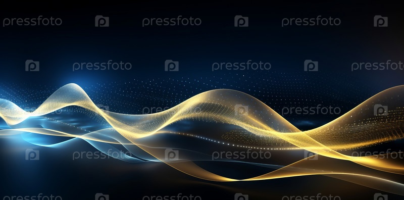 Абстрактные синие и желтые волны на темном фоне и огни боке
