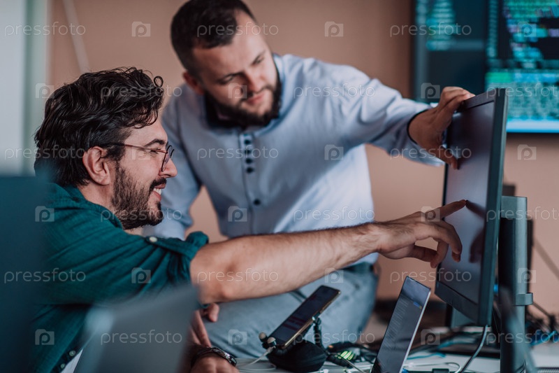 Программисты, погруженные в тесное сотрудничество, усердно трудятся вместе над решением сложных проблем и разработкой инновационных мобильных приложений с безупречной функциональностью
