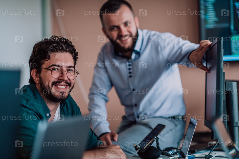 Программисты, погруженные в тесное сотрудничество, усердно трудятся вместе над решением сложных проблем и разработкой инновационных мобильных приложений с безупречной функциональностью