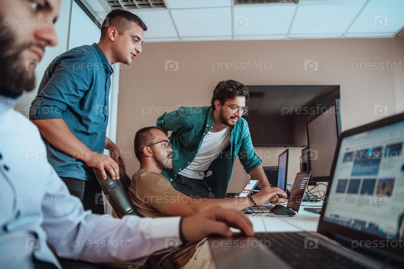 Программисты, погруженные в тесное сотрудничество, усердно трудятся вместе над решением сложных проблем и разработкой инновационных мобильных приложений с безупречной функциональностью