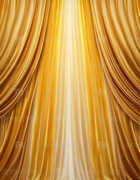 Занавес с мягкими плавными стекающими складками. Глубокий желтый цвет и роскошная текстура создают драматическую и элегантную атмосферу. Декорация и дизайн интерьера. Дорогая занавес из богатой ткани. AI