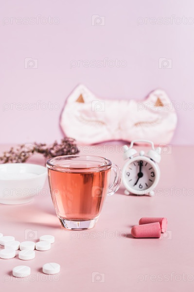 Средства от бессонницы и аксессуары для сна на столе вертикальный вид