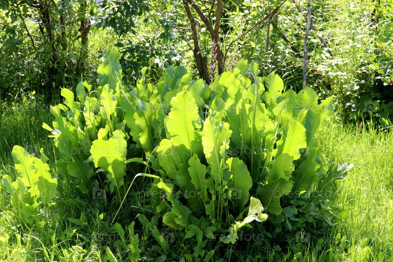 Грядка с щавелем в огороде в солнечный день, выращивание зелени
