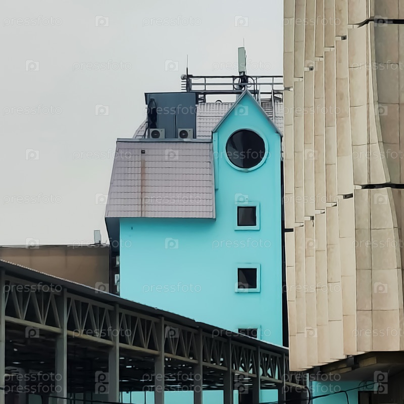 Синий дом с круглым окном