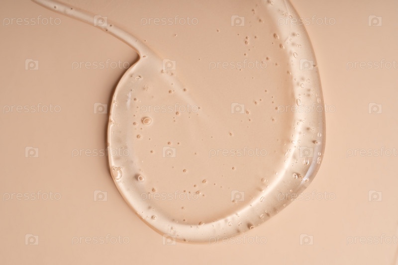 Жидкий гель мазок, изолированный на бежевом фоне. Красота косметического пятна, такого как чистый прозрачный лосьон алоэ, сыворотка желе для лица, очищающее средство, гель для душа или шампунь вид сверху
