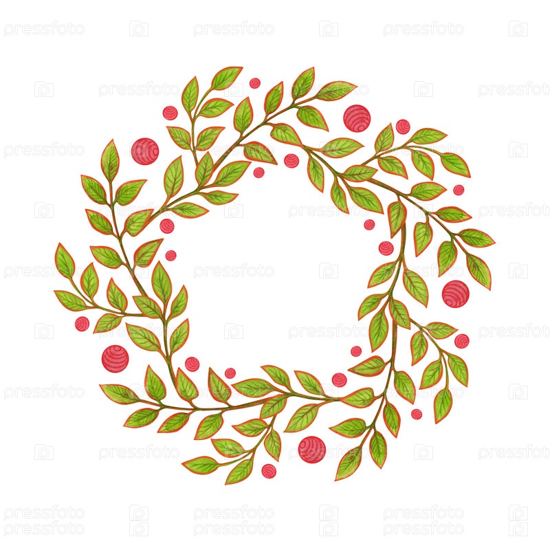 Простой венок из веточек с листьями. Акварельный рисунок шаблона с пустым местом для текста. Изолированная примитивная романтическая рамка для украшения посуды и текстиля, дизайна полиграфической продукции