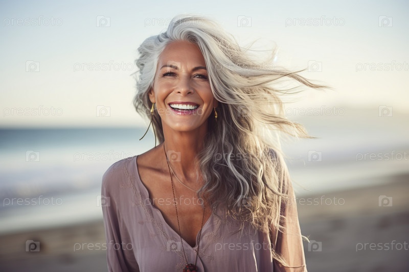 Портрет улыбающейся женщины, закутанной в одеяло на пляже