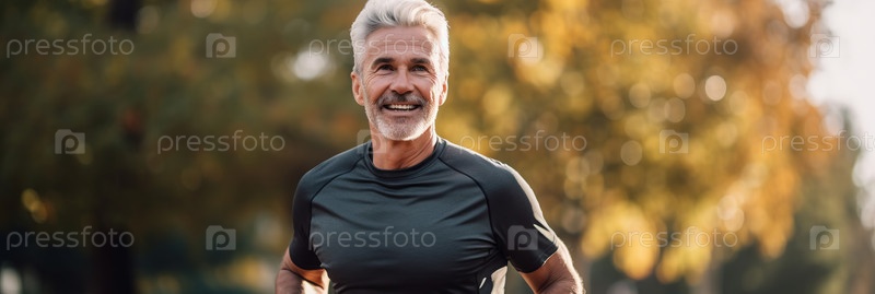 Портрет счастливого пожилого мужчины с седыми волосами и бородой в спортивной одежде