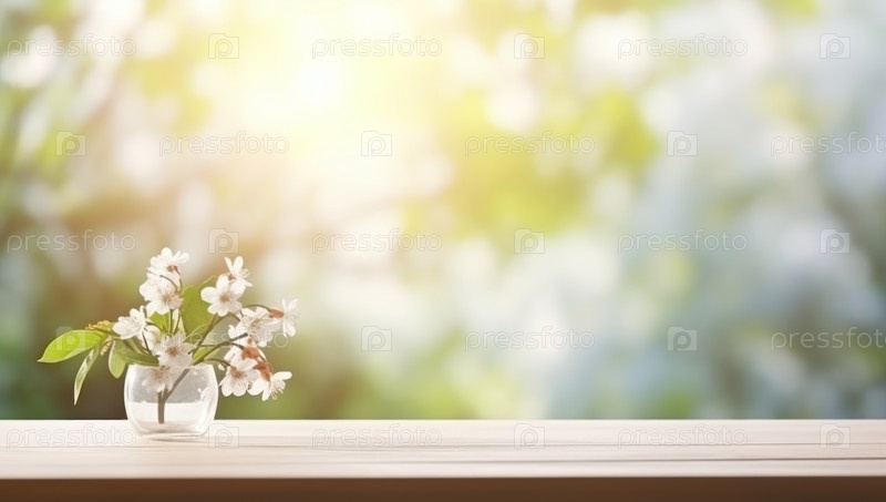 Пустой кухонный стол с размытым фоном современного интерьера весной