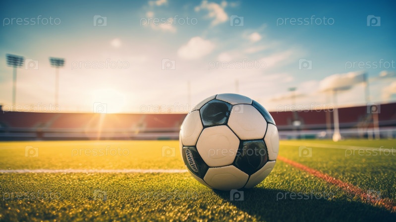 Изношенный футбольный мяч на траве стадиона с протекающим светом