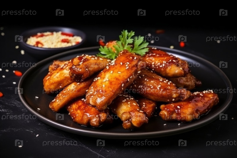 Эти куриные крылышки покрыты липким и ароматным соусом, что делает их идеальной закуской или основным блюдом для любого случая. Куриные крылышки идеально приготовлены