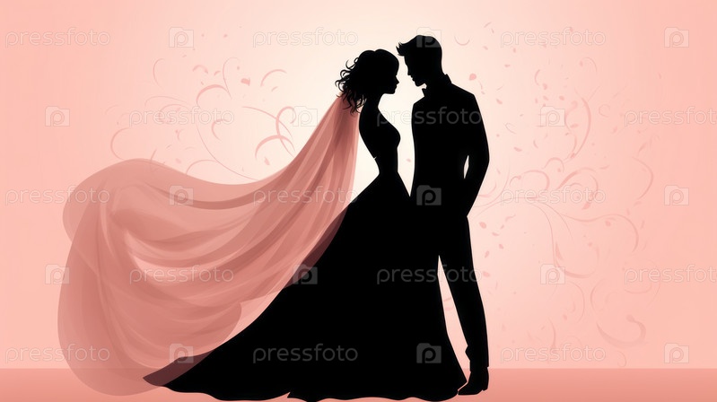 Невеста и жених нежно танцуют на романтическом градиентном фоне