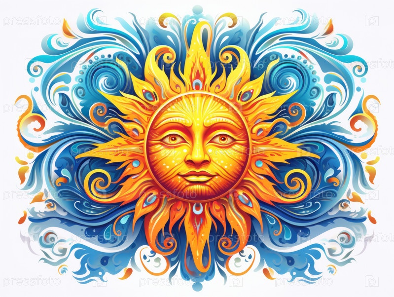 Иллюстрация в стиле витража с абстрактным солнцем,круглое изображение