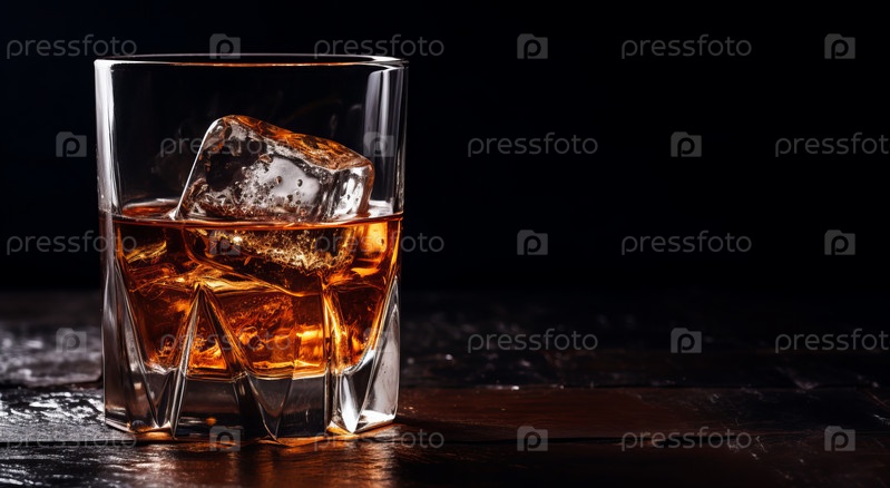 Виски со льдом в стакане, на темном фоне