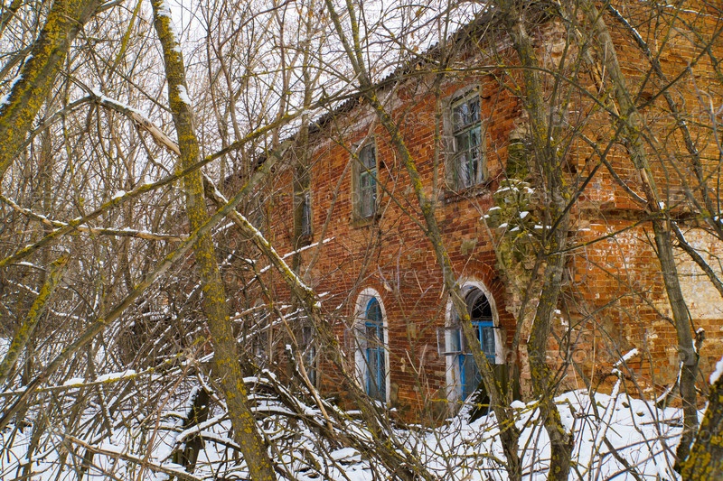 Сельский пейзаж. Заброшенное здание. Поселок Красная Заря. Орловская область