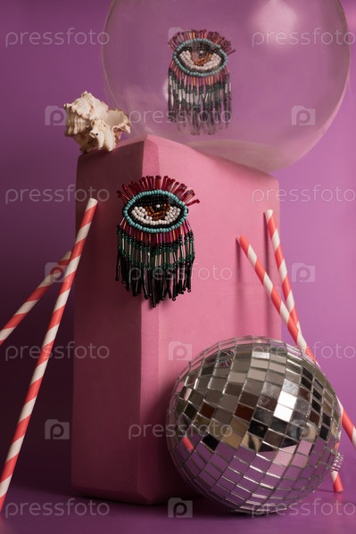 Дискошар глаза из бисера розовый фон