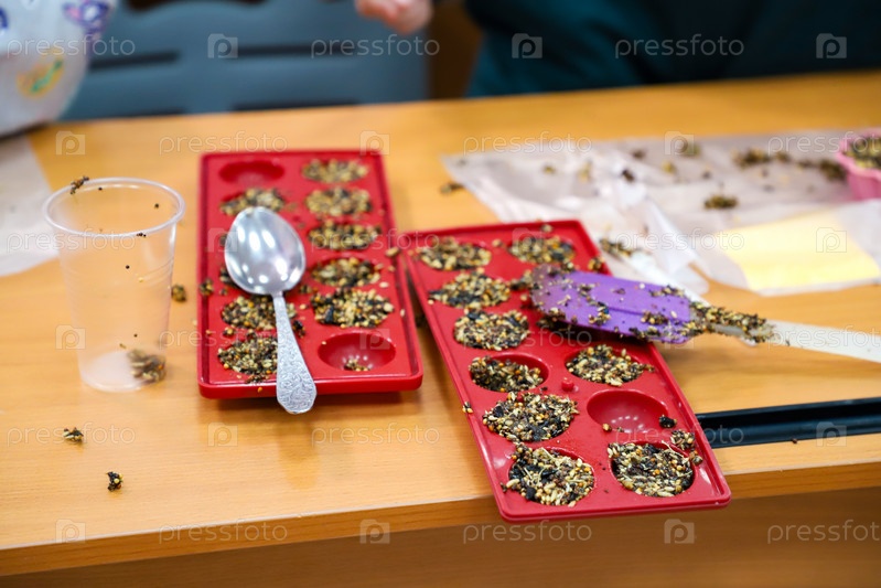 Процесс создания съедобной кормушки для птиц из желатина в форме своими руками