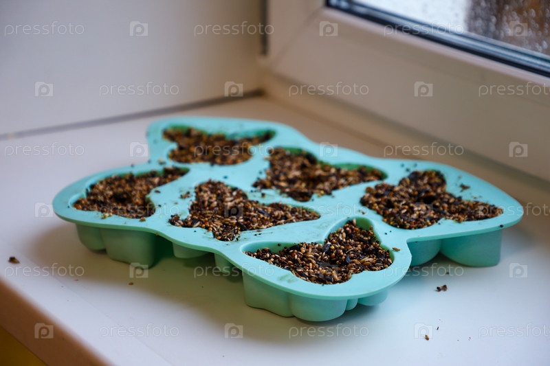 Процесс создания съедобной кормушки для птиц из желатина в форме своими руками
