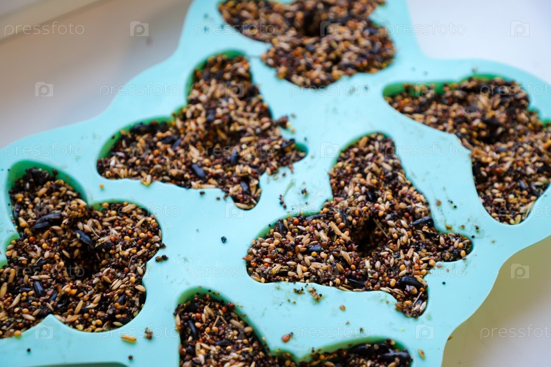 Процесс создания съедобной кормушки для птиц из желатина в форме своими руками