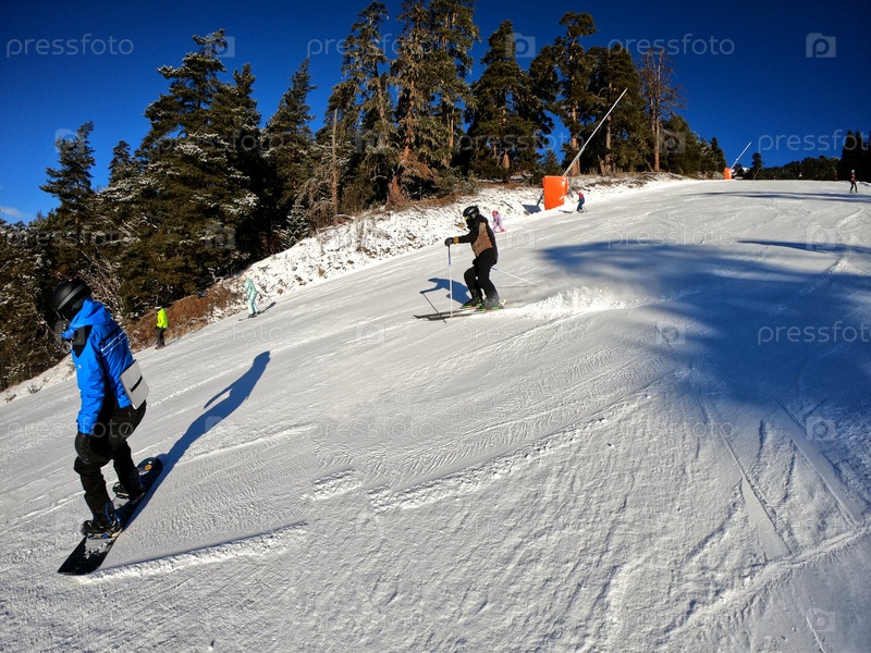 Архыз. Горнолыжная база. На спуске Трасса синего уровня