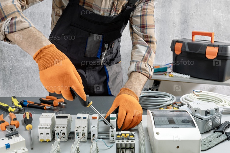 Ремонт промышленных электрических панелей. Электрик за работой