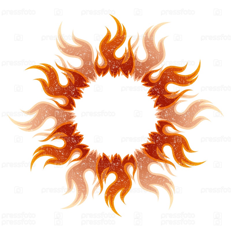 Круглая рамка с ярким огненным солнцем