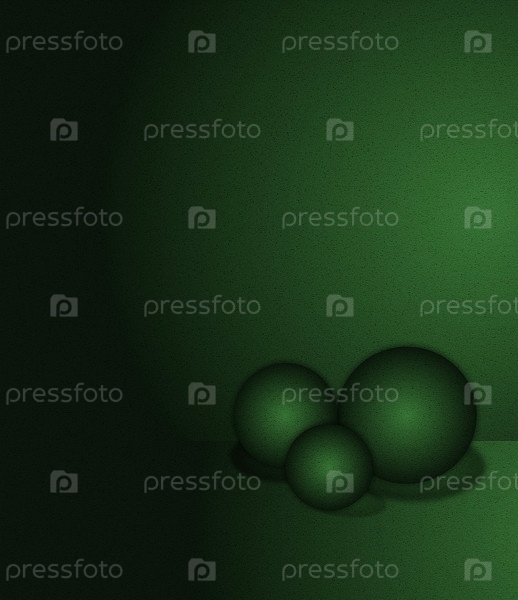 Три зеленые сферы на зеленой текстурированной поверхности с эффектной подсветкой