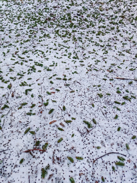 Зеленая трава в снегу, зимний фон, крупный план фото