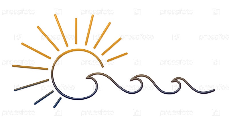 Стилизованный символ рассвета солнца с голубой волной