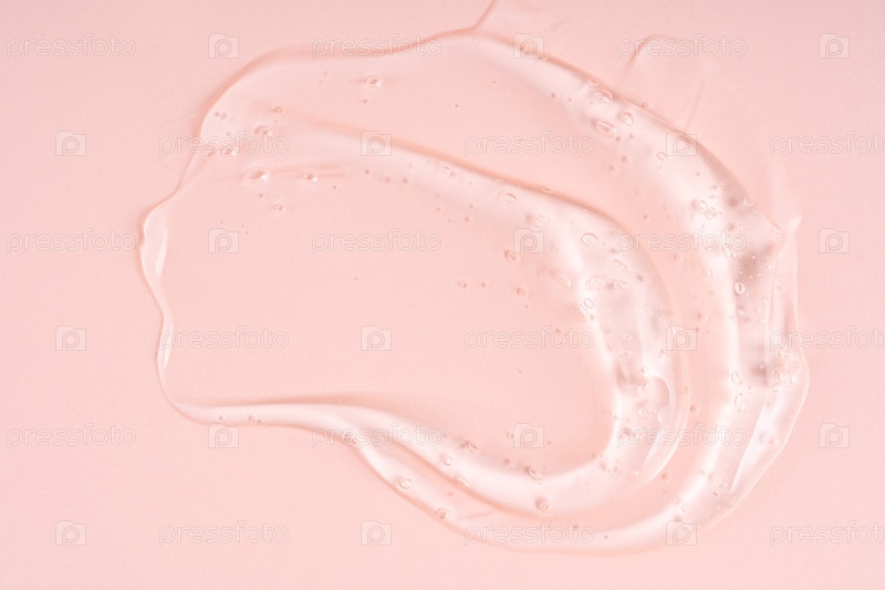 Жидкий гель мазок, изолированный на розовом фоне. Красота косметического пятна, такого как чистый прозрачный лосьон алоэ, сыворотка желе для лица, очищающее средство, гель для душа или шампунь вид сверху