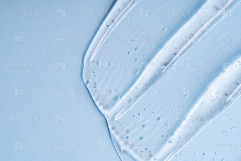Крупный план образцов косметического геля или сыворотки синего цвета с глянцевой, блестящей текстурой на гладком синем фоне