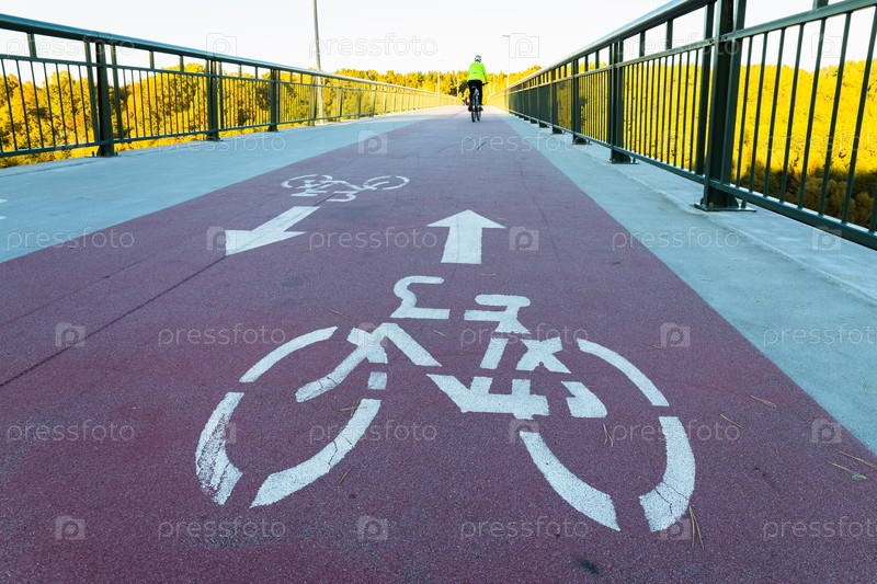 Символ велосипедной дорожки обозначал дорогу для велосипедистов на пешеходном мосту. Знак велосипеда