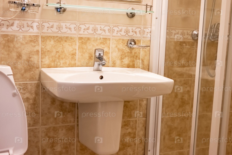Раковина в ванной с хромированным краном и мыльницей на кафельной стене